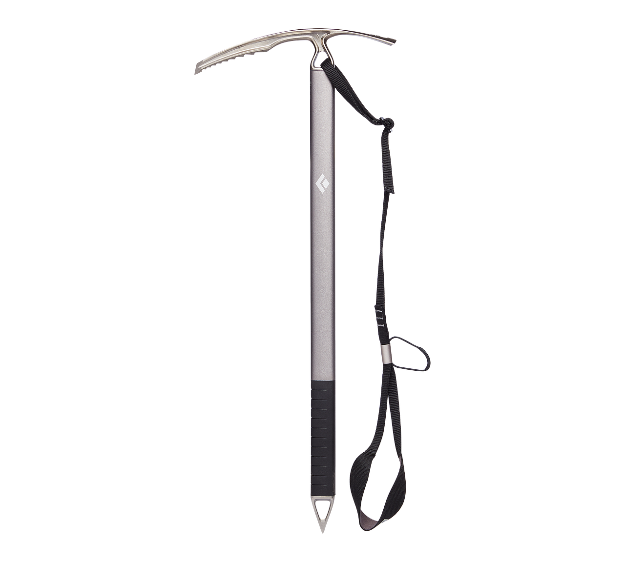 The Black Diamond Raven Ice Axe with Grip takes our classic mountaineer's piolet, the Raven, and combines a new dual-density rubber grip and our updated Slider Leash for increased security and versatility. Now redesigned, the Raven with Grip is lighter, and has an updated investment-cast, stainless steel head ergonomically improved for increased comfort while walking. The updated pick and adze geometry allow for more secure placements and effcient chopping, and the revamped spike adds better bite on those icy placements with improved plunge-ability. The durable aircraft-grade aluminum shaft is also improved with a trapezoidal cross-section for a more comfortable, better grip.